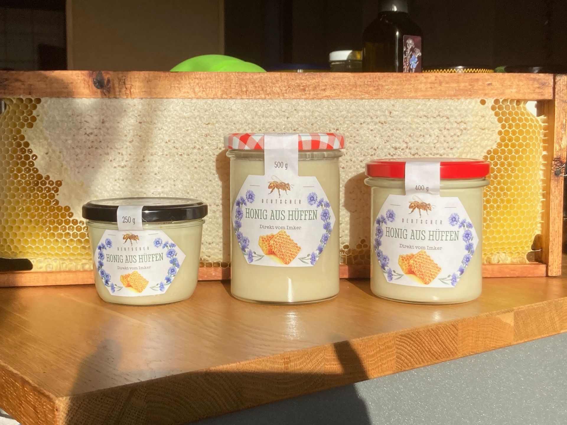 Wir verarbeiten unseren Honig nach Vorgaben des Deutschen Imkerbundes und dürfen auch in Honiggläser mit dem bekannten Siegeletikett abfüllen. Bei Interesse an größeren Gebinden als die von uns abgefüllten 250g, 400g und 500g sprechen Sie uns bitte an. Für größere Abnahmemengen zum Beispiel als Präsent für Kunden, Mitarbeiter oder andere Kontakte, können wir natürlich auch in andere Gläser abfüllen und Ihr eigenes Etikett verwenden, welches nur durch die Deutsche Honigverordnung limitiert wird. Sprechen Sie uns gerne an!