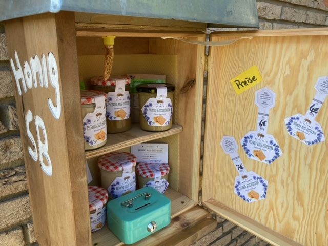 Zusätzlich können wir nun von einer guten Zusammenarbeit mit dem SchröderhofFriedrichsstr. 30 · 32130 Enger berichten, dort gibt es nicht nur Honig aus Hüffen zu kaufen, sondern eine Menge Regional und gut produzierte Produkte, Eier aus einem Hühnermobil und regionale Kartoffeln. Ein Besuch ist auf jeden Fall empfehlenswert!